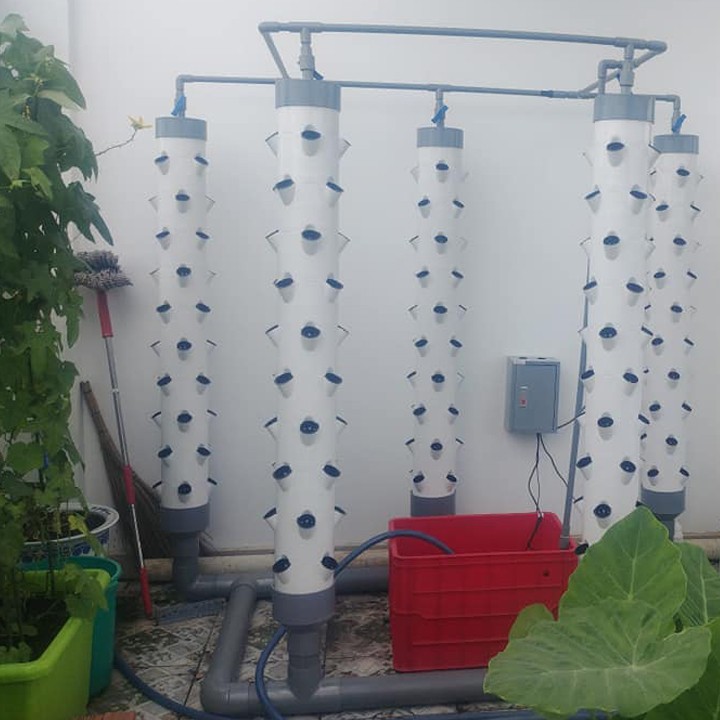 Bộ sản phẩm Trụ trồng rau khí canh, thủy canh bio trụ đứng 40 rọ trồng cây bao gồm: