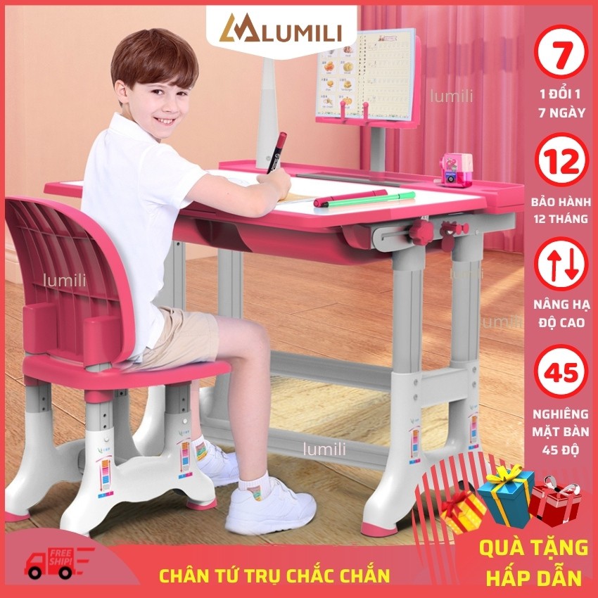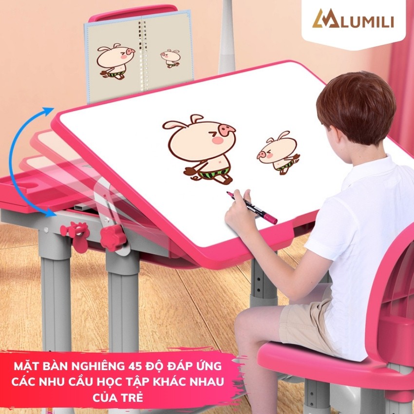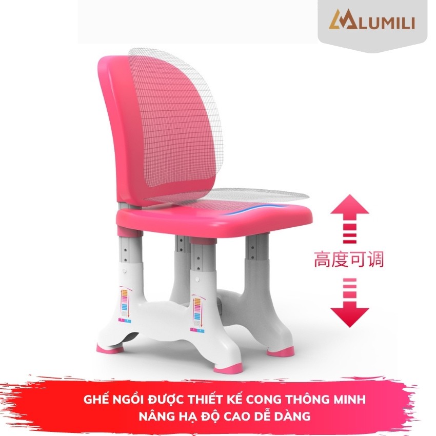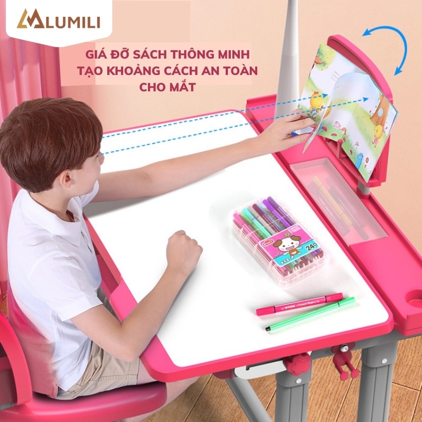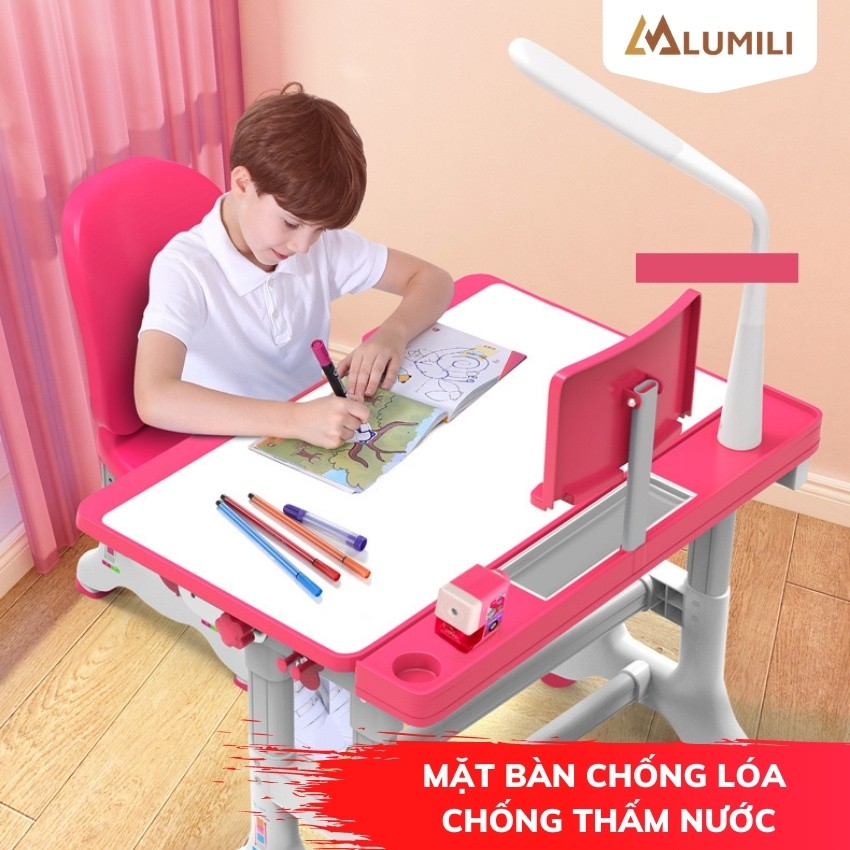 [ tặng giá kẹp sách bình nước kute] bộ bàn ghế chống gù chống cận Lumili B02 bàn học thông minh cho học sinh