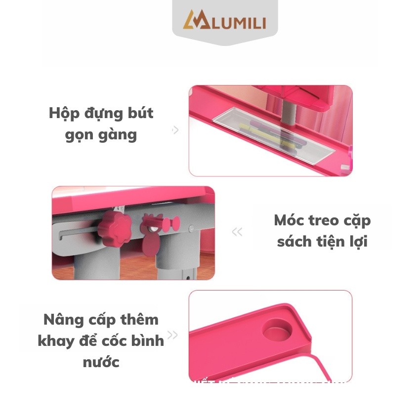 Giới thiệu [ tặng giá kẹp sách bình nước kute] bộ bàn ghế chống gù chống cận Lumili B02 bàn học thông minh cho học sinh