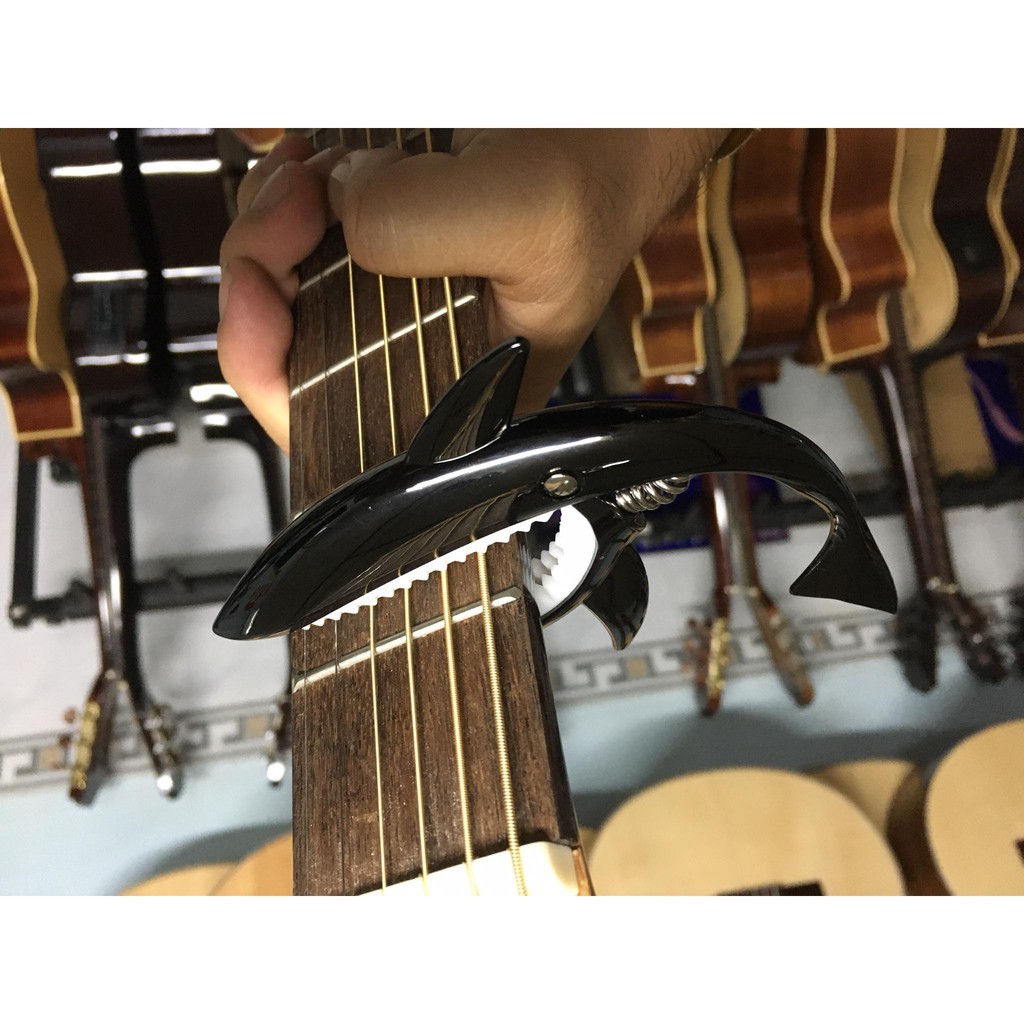 Sở thích & Sưu tầm > Nhạc Cụ & Phụ Kiện > Phụ Kiện Âm Nhạc || [ Tặng Giáo Trình Guitar ] GUITAR CAPO CÁ MẬP - GUITAR SHARK CAPO Gold, Bạc, Titan, Đen, HồngCòn hàng