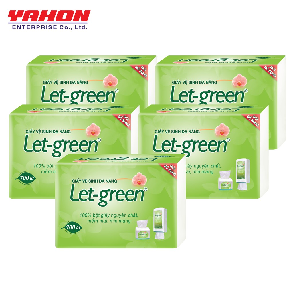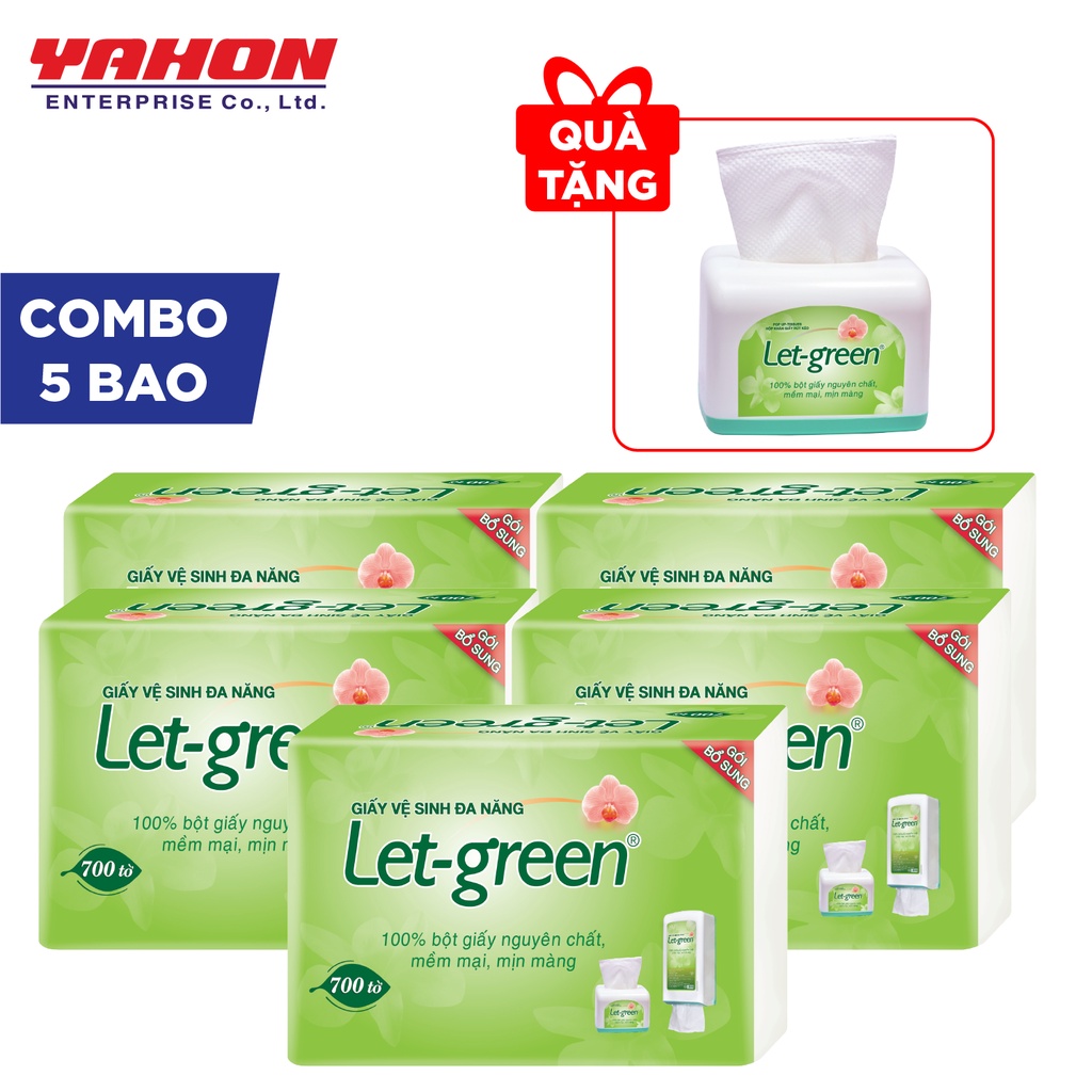 {Tặng hộp nhựa để bàn} BỘ 5 GÓI BỔ SUNG GIẤY VỆ SINH LET-GREEN 10*21 CM 700 TỜ