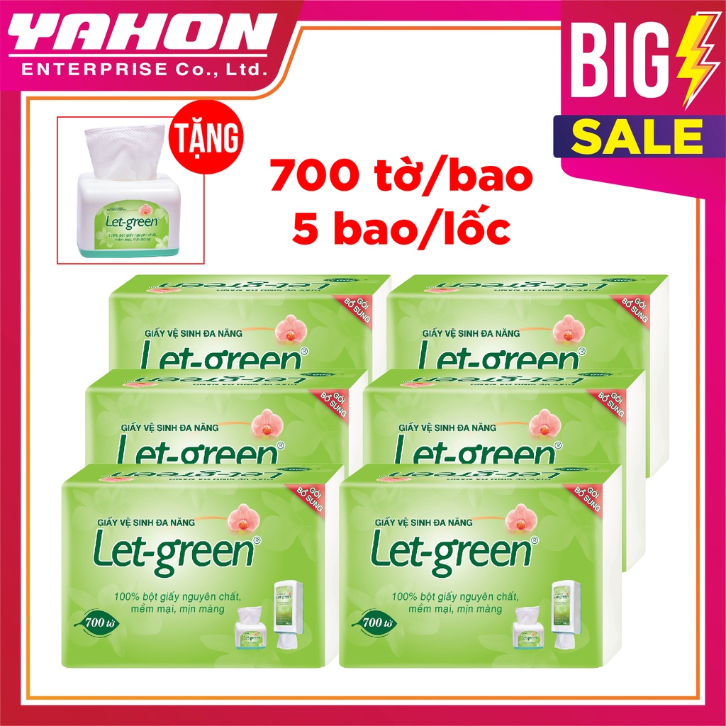 Nhà cửa & Đời sống > Dụng cụ chăm sóc nhà cửa > Khăn vệ sinh || {Tặng hộp nhựa để bàn} BỘ 5 GÓI BỔ SUNG GIẤY VỆ SINH LET-GREEN 10*21 CM 700 TỜCòn hàng