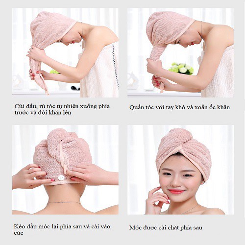 Khăn ủ tóc quấn tóc sau khi gội đầu - Thấm hút tốt siêu nhanh khô, mềm mại 65x25 cmKích thước: dài 65cm, rộng phần đầu 25cm.