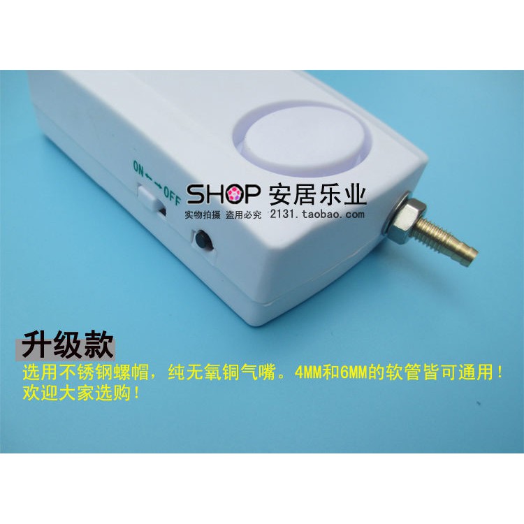 - Báo động được cấp nguồn bằng pin nhiều lớp 9V, lắp pin vào và đặt công tắc ở vị trí ON là có thể sử dụng được, khi áp suất không khí thấp, báo động sẽ phát ra âm thanh báo động lớn, lúc này hãy tắt công tắc báo động để loại bỏ sự cố áp suất. Sau đó, bật công tắc cho thiết hoạt động lại.