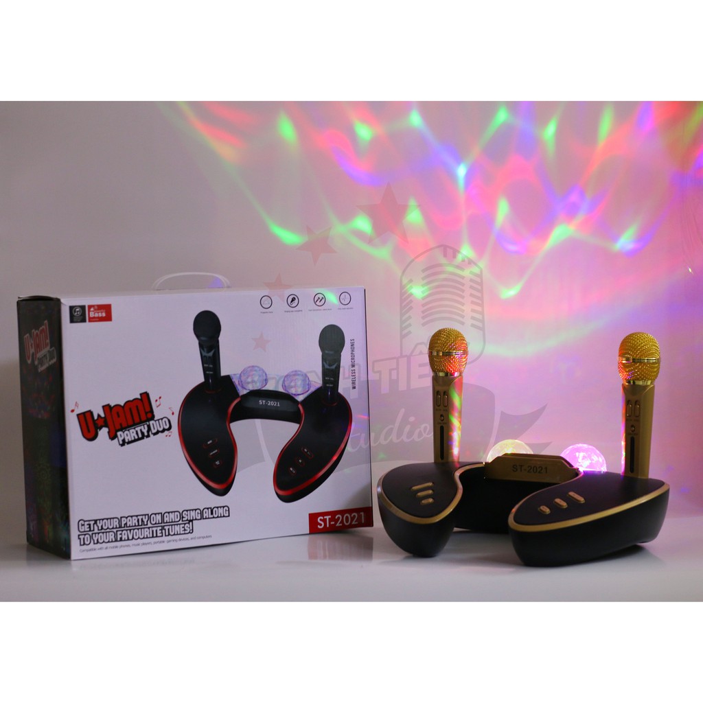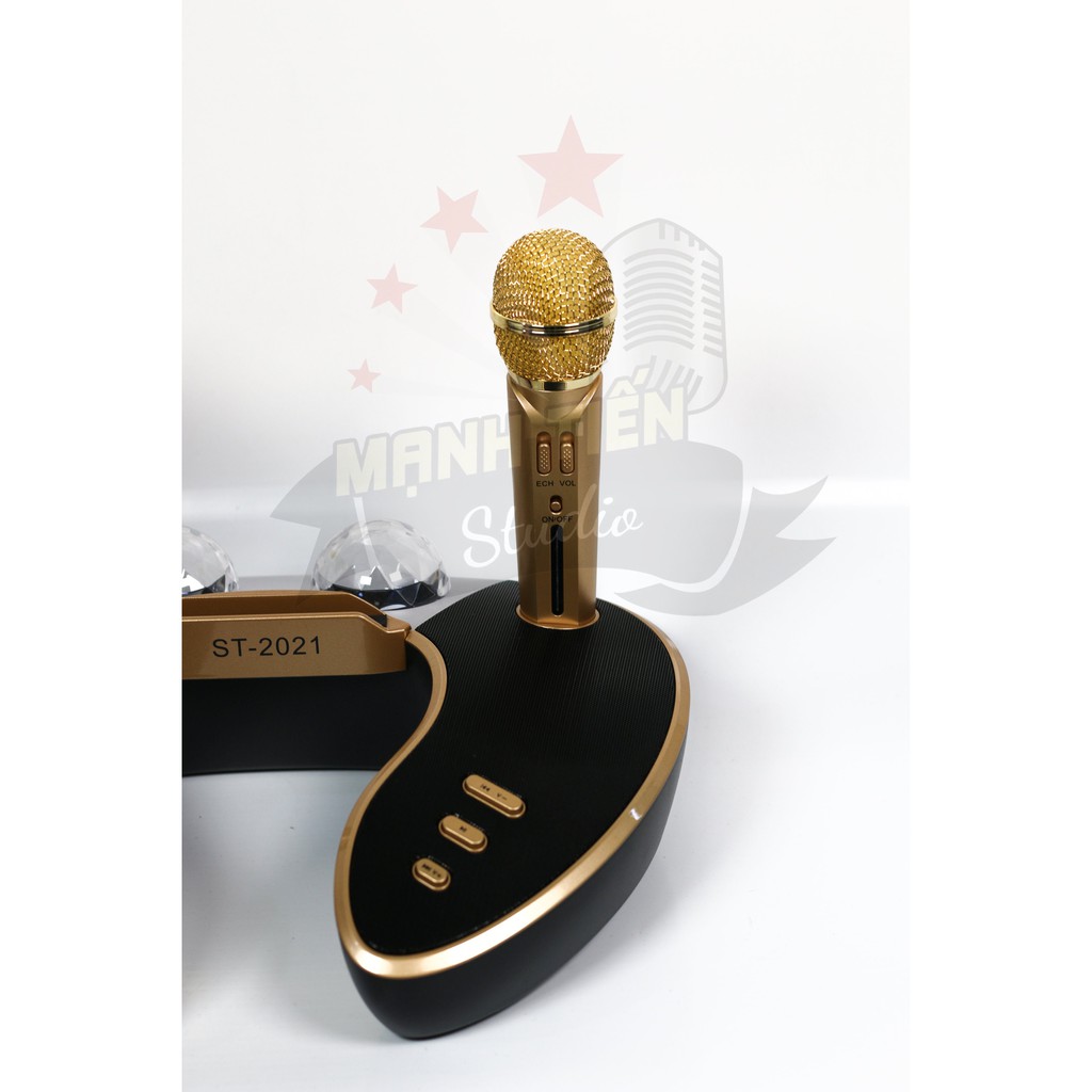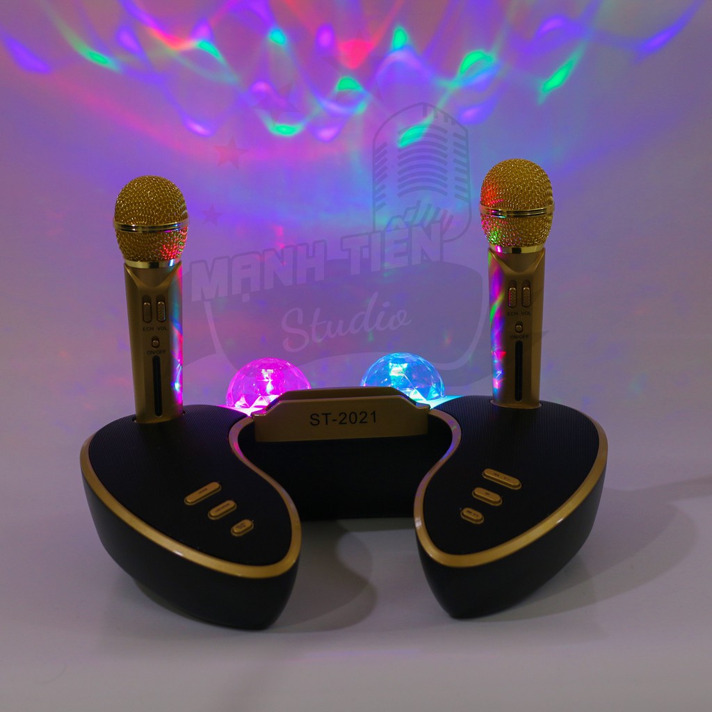 Loa Karaoke kèm 2 Mic Bluetooth ST-2021 công nghệ mới, Thiết kế độc đáo, công suất lên đến 30W, Sản phẩm có 3 màu: Hồng, Đen, Vàng, Trọng lượng sản phẩm lên tới 2kg, cho âm thanh đầm và chắc.