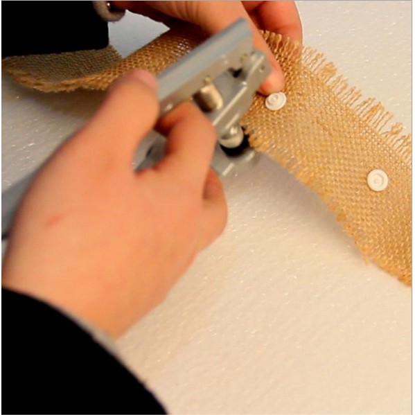 Đặt cúc vào đúng vị trí và bấm kìm với lực vừa đủ.