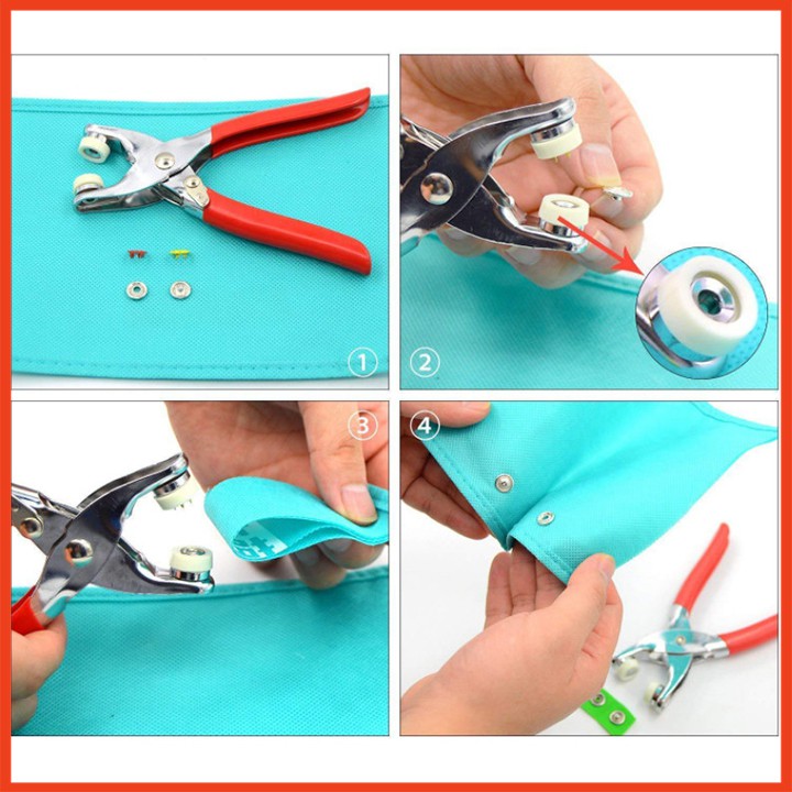Kìm bấm cúc vành, cúc sắt 4 chi tiết, kềm bấm khuy, bấm cúcBấm khuy bấm hay cúc áo dạng bấm rất đơn giản