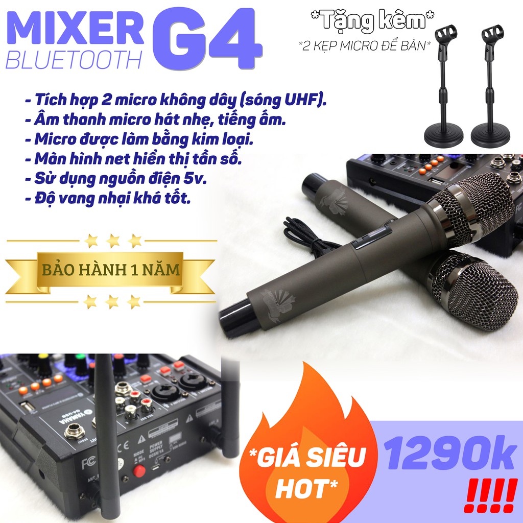 [TẶNG KÈM] Bộ Mixer G4 cao cấp tặng kèm 2 kẹp micro mini để bàn chuyên hát karaoke gia đình hỗ trợ mọi loa kéo, otô