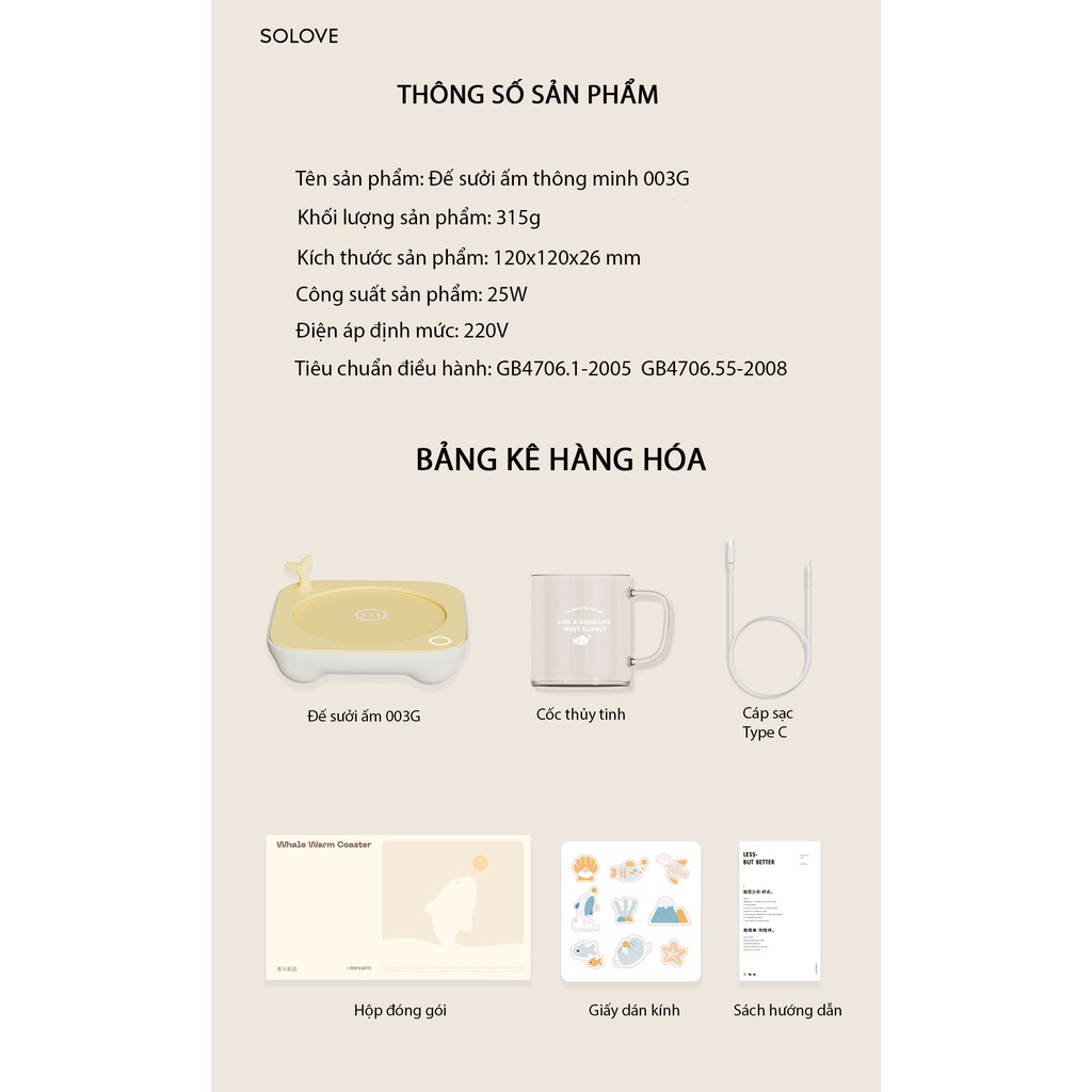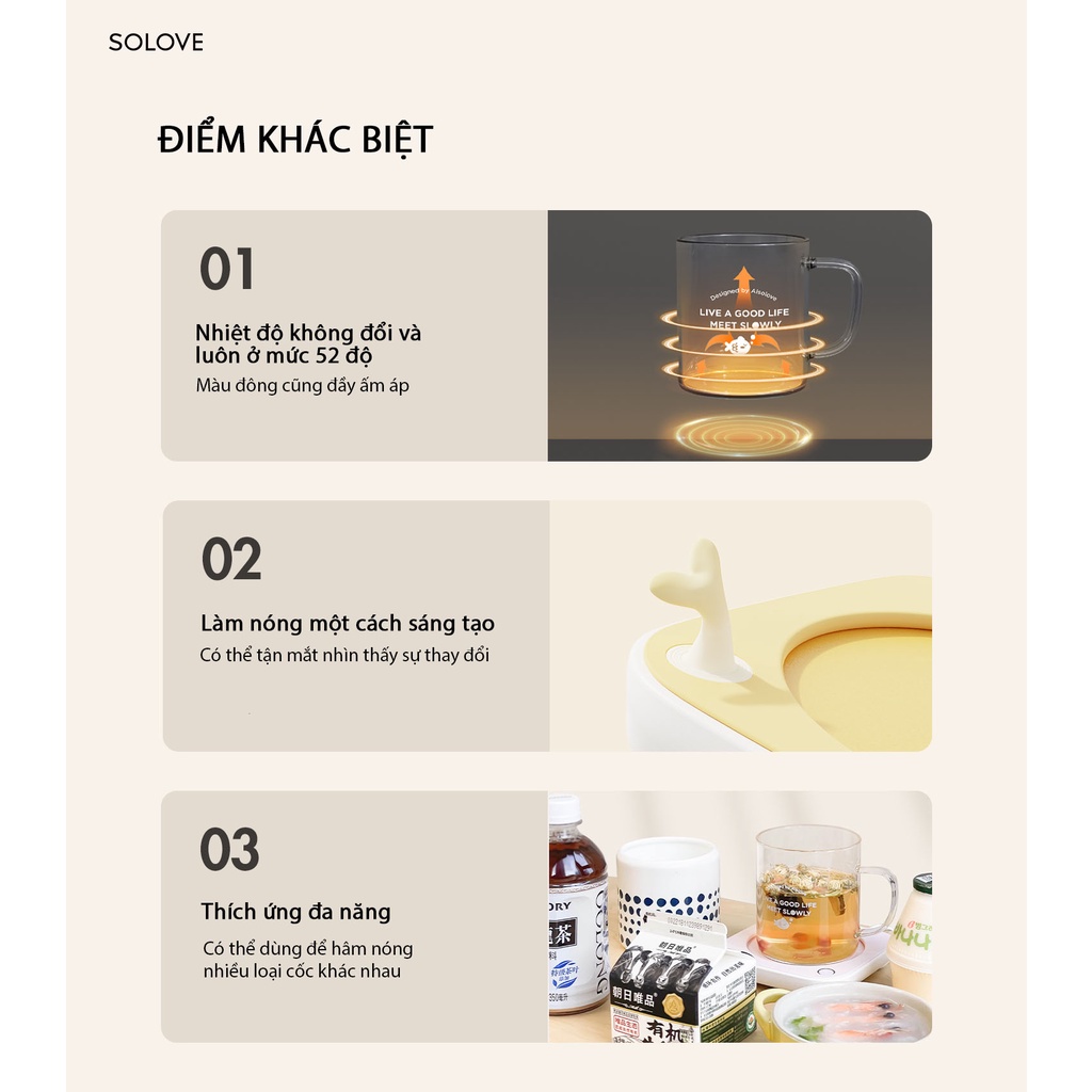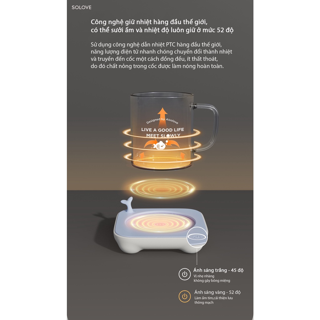 Giới thiệu [ Tặng Kèm Cốc ] Đế Hâm Nóng Đồ Uống Thông Minh SOLOVE 003G Công Nghệ Dẫn Nhiệt PTC Dùng Được Cho Tất Cả Các Loại Cốc