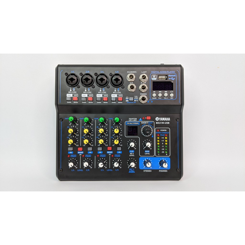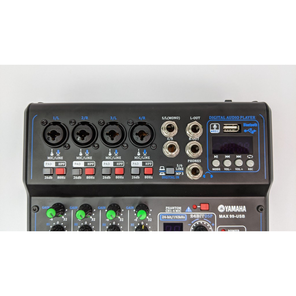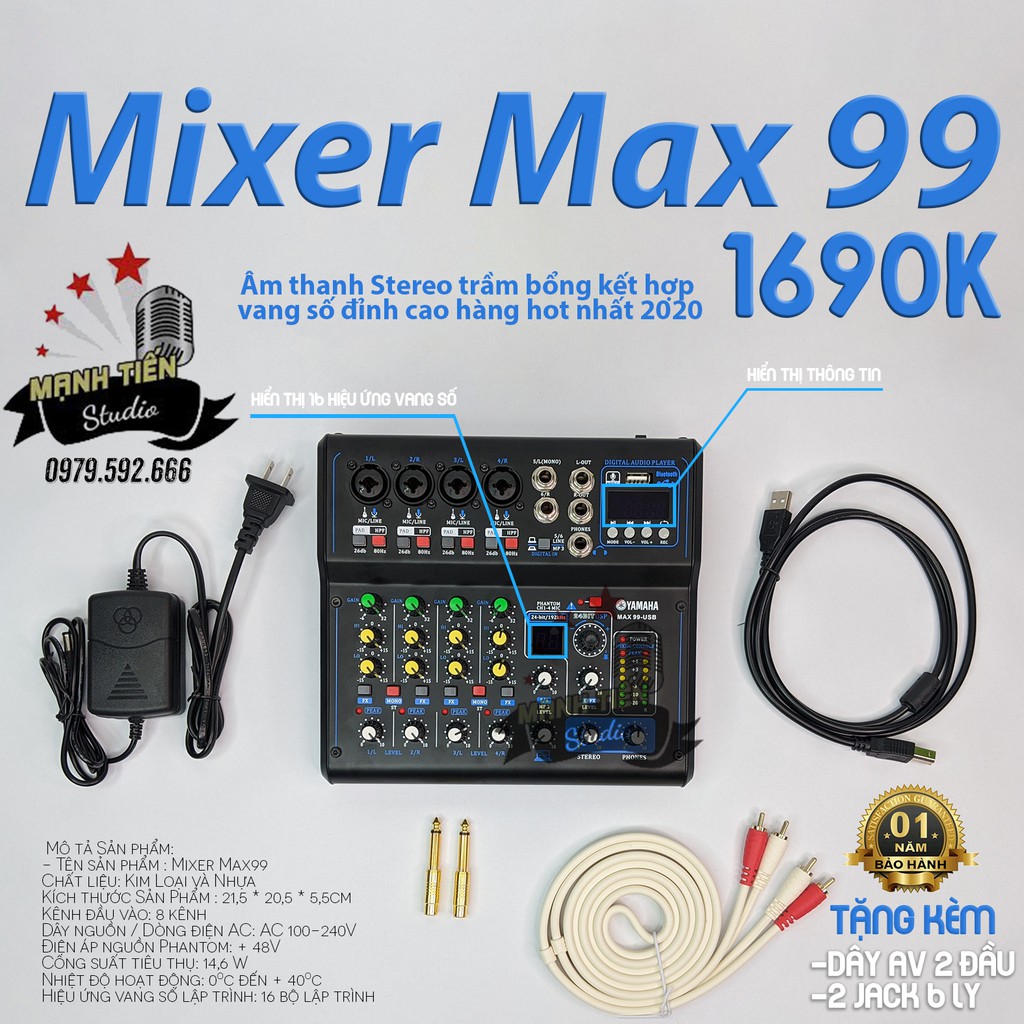 Giới thiệu [tặng kèm dây hoa sen+ 2 jack 6 ly] Mixer Yamaha Max 99 USB bluetooth 16 chế độ vang karaoke gia đình, livestream fb