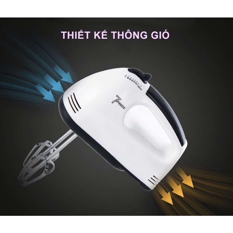 - Hệ thống điều tốc 7 cấp độ giúp điều chỉnh tốc độ phù hợp cho nhiều loại bột bánh, trứng.