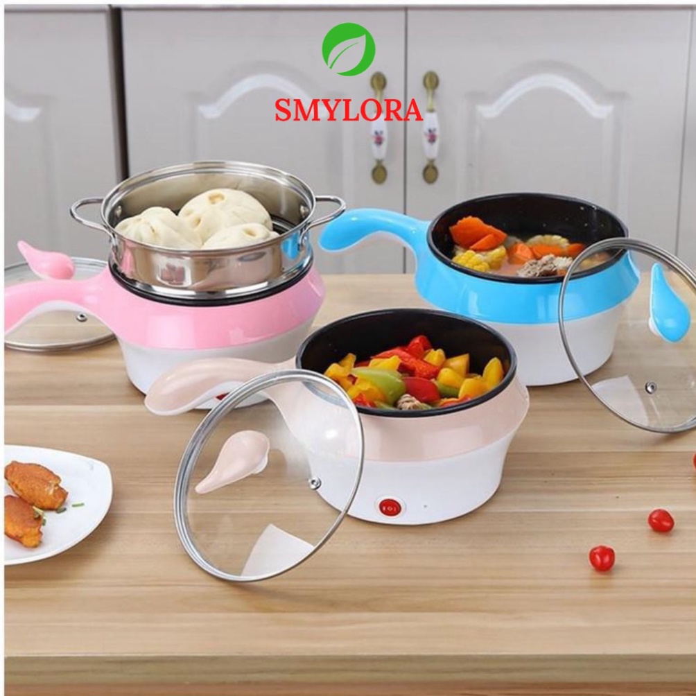 ( Tặng Kèm Khay Hấp ) Nồi Điện Mini Hai Tầng Đa Năng Dùng Chiên Xào, Hấp Luộc, Nấu Cơm, Nấu Lẩu Mini