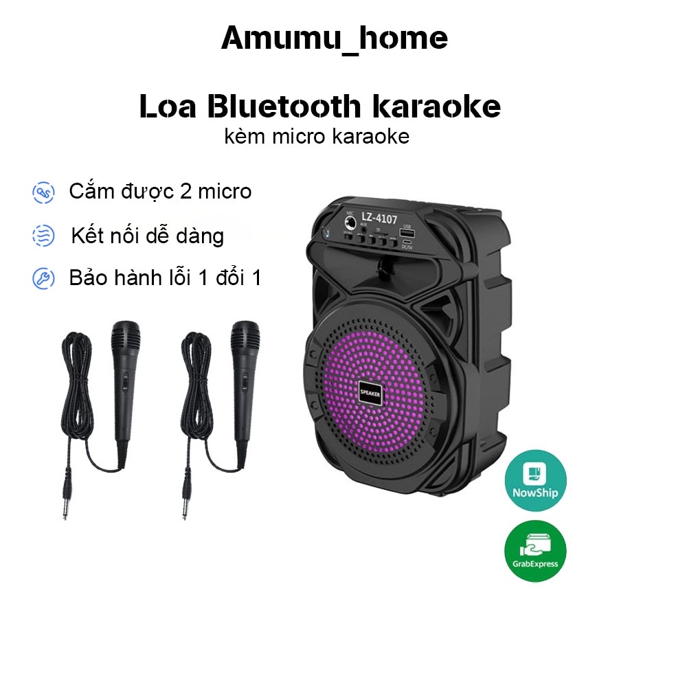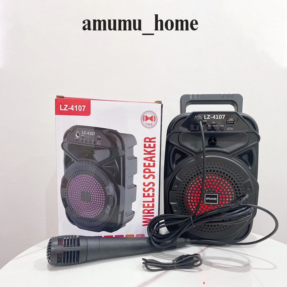 Thiết Bị Âm Thanh > Dàn âm thanh > Loa || [tặng kèm mic]Loa bluetooth karaoke mini có đèn led Lz-4107 âm thanh chuẩn speakerCòn hàng