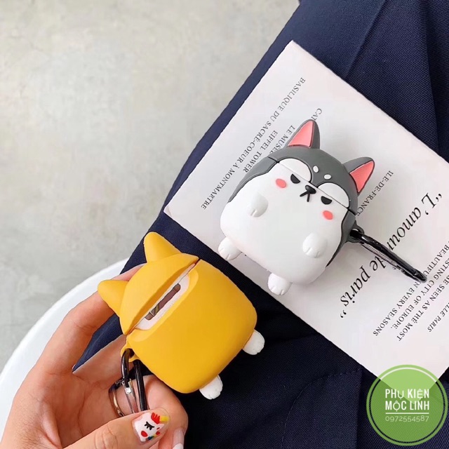 Giới thiệu ☘️Tặng kèm móc☘️ Case bao airpod silicon 1 2 3 Pro Chó Siba vàng trắng- Vỏ bọc đựng tai nghe không dây i11 i12...AirPods