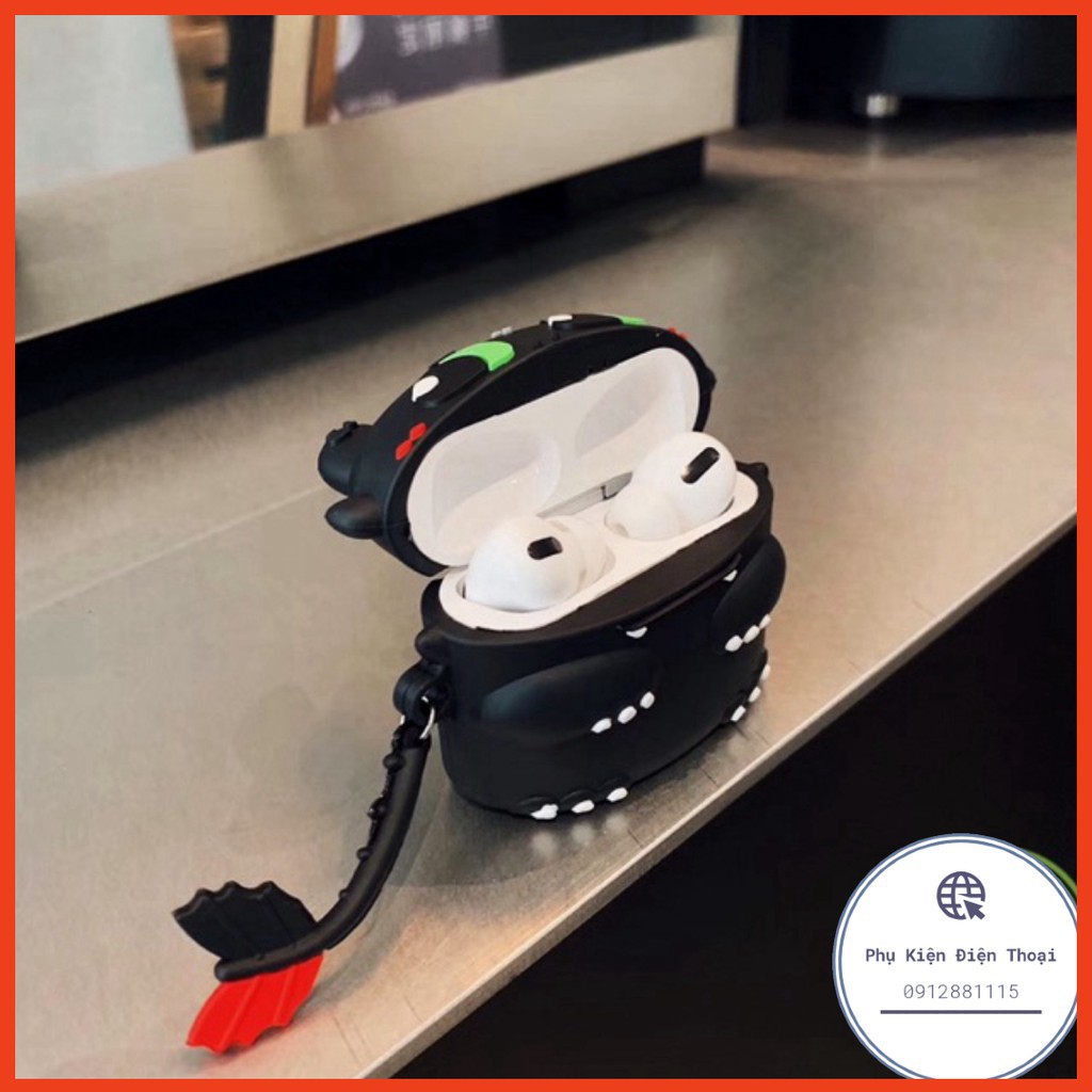 Tặng kèm móc treo- Case airpod 1 2 3 Pro Rồng Night Fury, Khủng long xanh, Bờm vàng, Tia chớp, Vịt đeo túi, Dinosaur