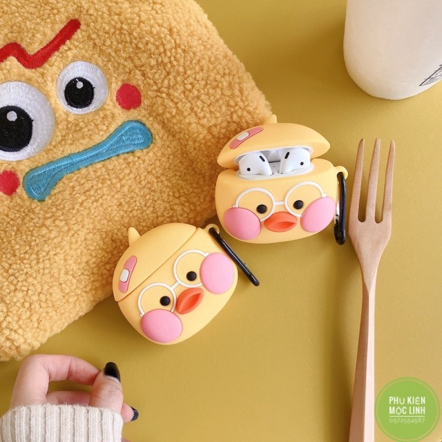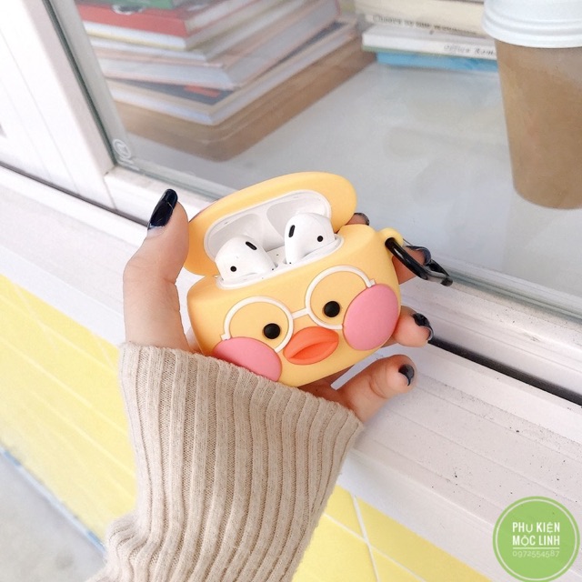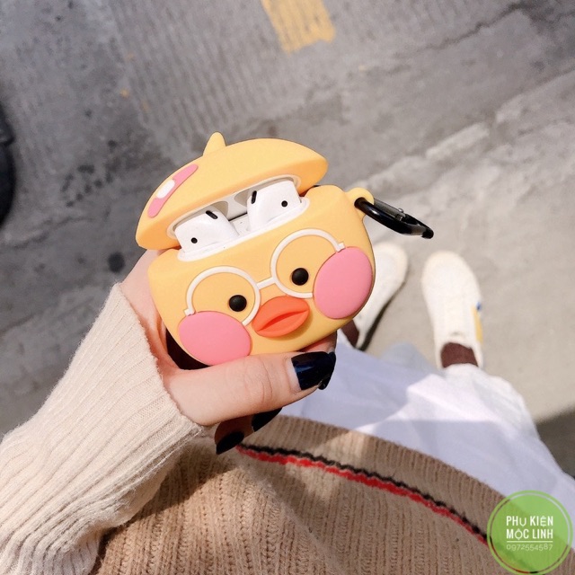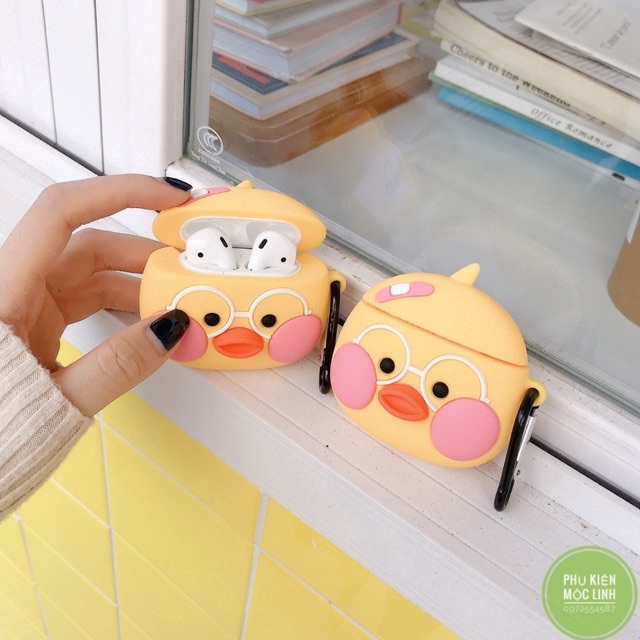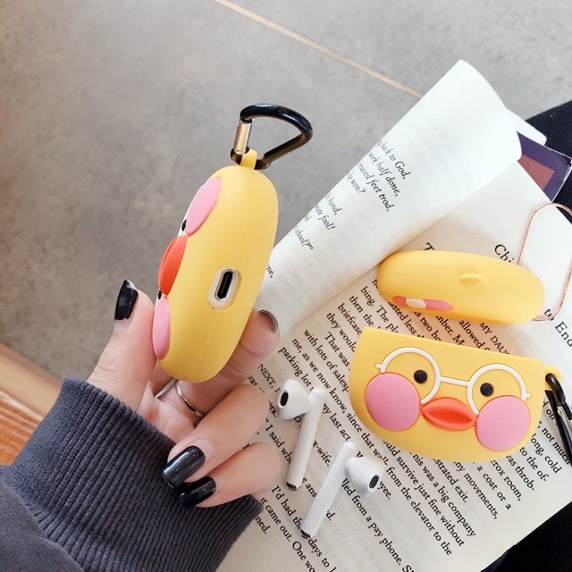 Giới thiệu ☘️Tặng kèm móc treo☘️ Case bao Airpod 1 2 Pro 3 Vịt má hồng - Vỏ bọc Cover đựng tai nghe không dây Airpods i11, i12...