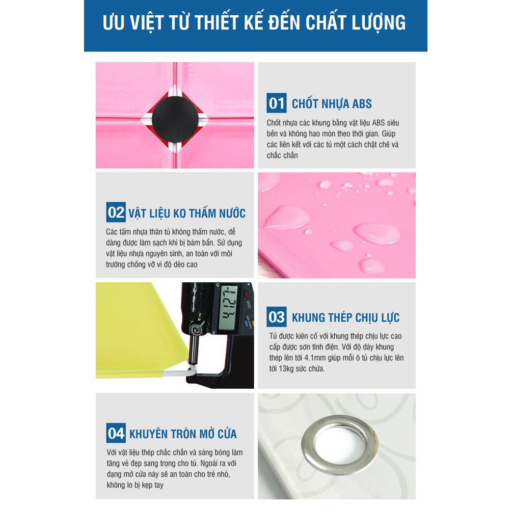 ☑ Màu sắc của tủ trang nhã, phong cách hiện đại. Khớp nối lắp ghép chắc chắn bằng nhựa ABS rất bền.