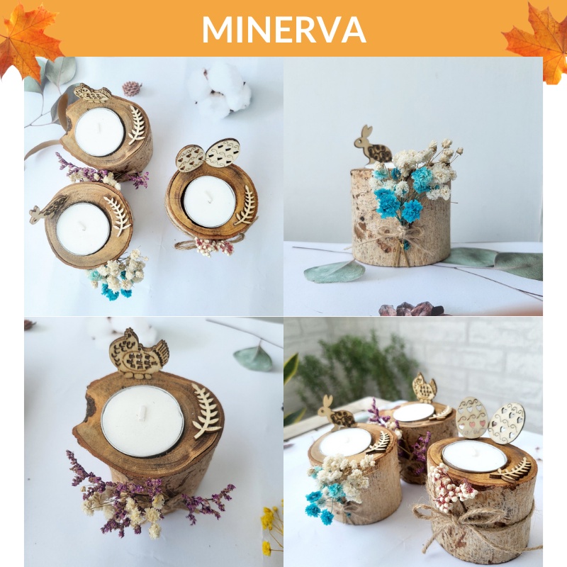 Với một chút sáng tạo, MINERVA tụi mình đã phối hợp cùng hoa khô, vải bố, cam quế,....tạo nên nhiều chủ đề, làm cho sản phẩm độc đáo, mới lạ, tạo không gian lãng mạn, trang nhã, sang trọng.