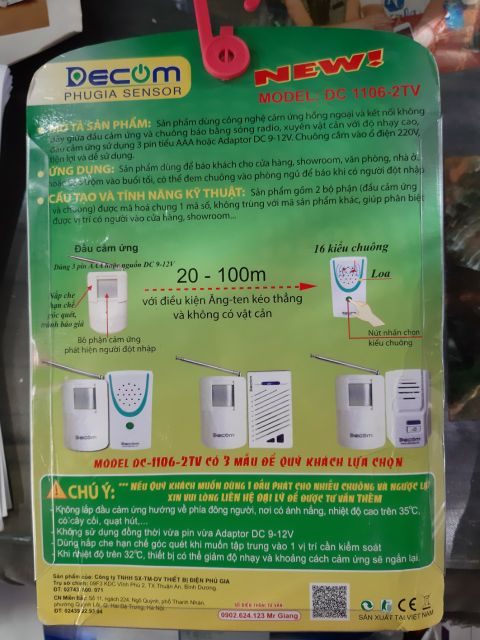 Thiết Bị Điện Gia Dụng > Mạch điện & Phụ tùng > Chuông cửa || [TẶNG KÈM PIN] BÁO KHÁCH - BÁO TRỘM TIẾNG VIỆT CHUÔNG RỜI KHÔNG DÂY THÔNG MINH TÍCH HỢP DECOM PHÚ GIA DC 1106-2TV SmartCòn hàng