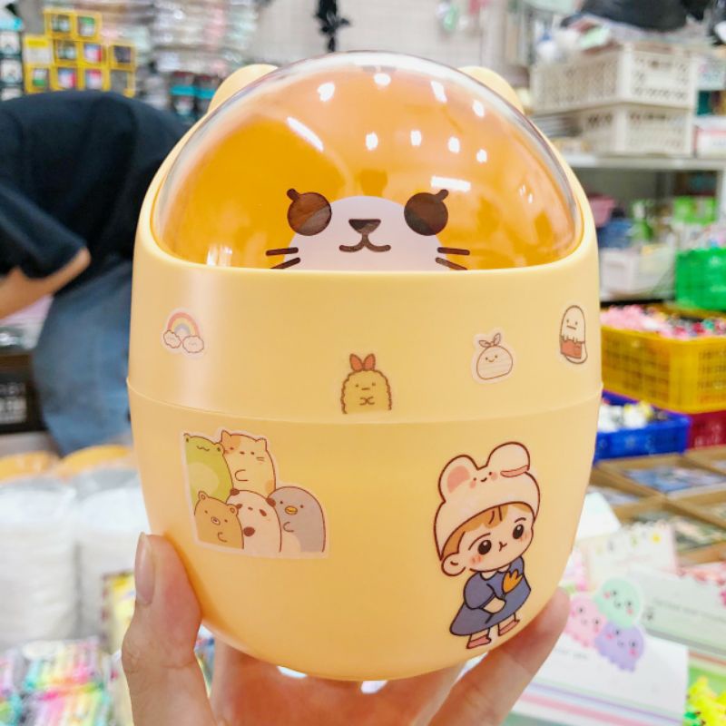 Thùng rác mini kèm sticker xinh xỉuThùng rác hoi mà cũng xinh xắn quá trùi luôn ạ, có em này để bàn vừa tiện lợi, vừa xinh xắn decor phòng học siu ổn áp lun ạhh