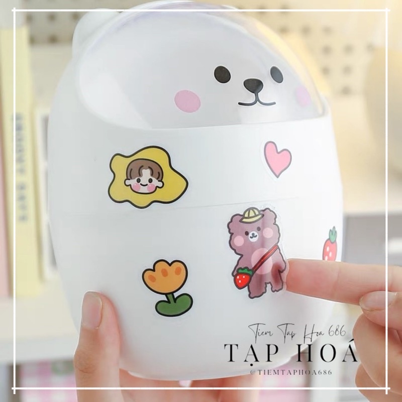 Giới thiệu [Tặng kèm sticker] Thùng rác mini để bàn FREESHIP Thùng rác nhựa - hộp đựng bút - hình gấu xinh xắn có nắp để bàn