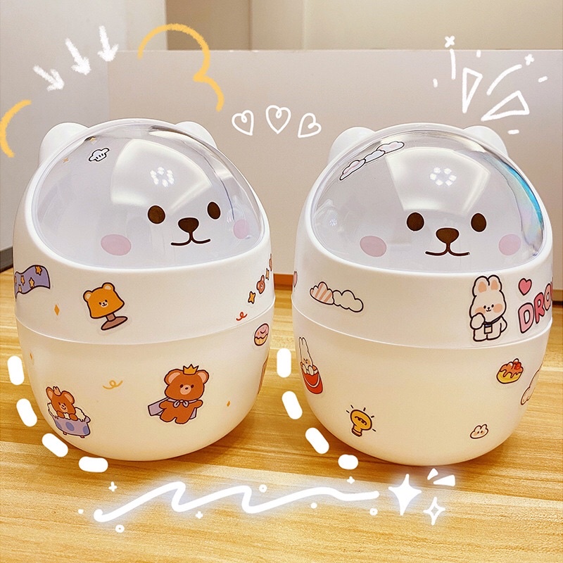 Nhà cửa & Đời sống > Dụng cụ chăm sóc nhà cửa > Thùng rác || (TẶNG KÈM STICKER) Thùng Rác Mini Hình Gấu Có Nắp Kiêm Hộp Đựng Bút Và Đồ Cá Nhân Để BànCòn hàng