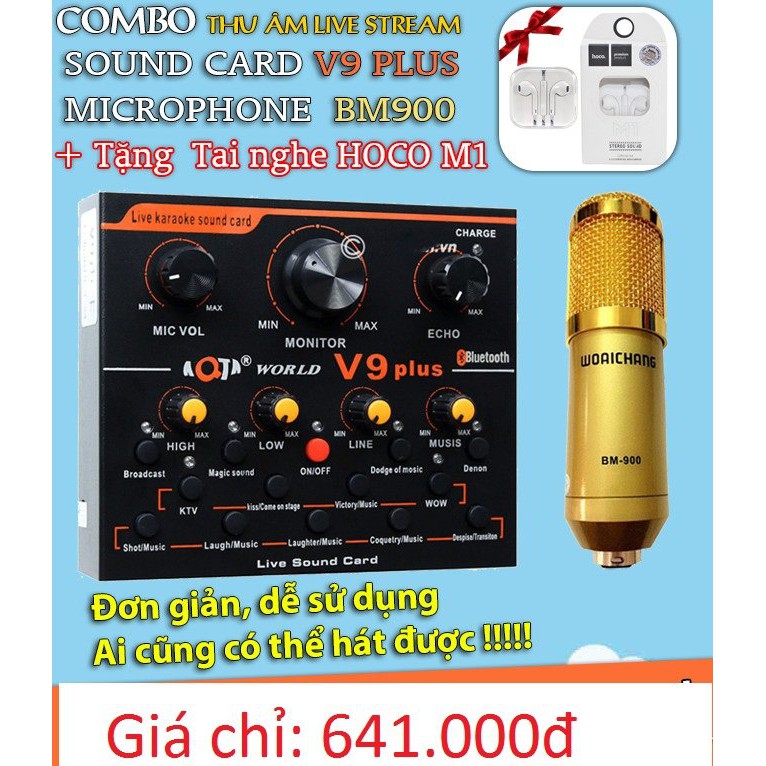 Giới thiệu [TẶNG KÈM TAI NGHE]Soundcard V9 Plus kết hợp micro BM900 thu âm,livetream,hát karaoke chuyên nghiệp-âm thanh đẳng cấp