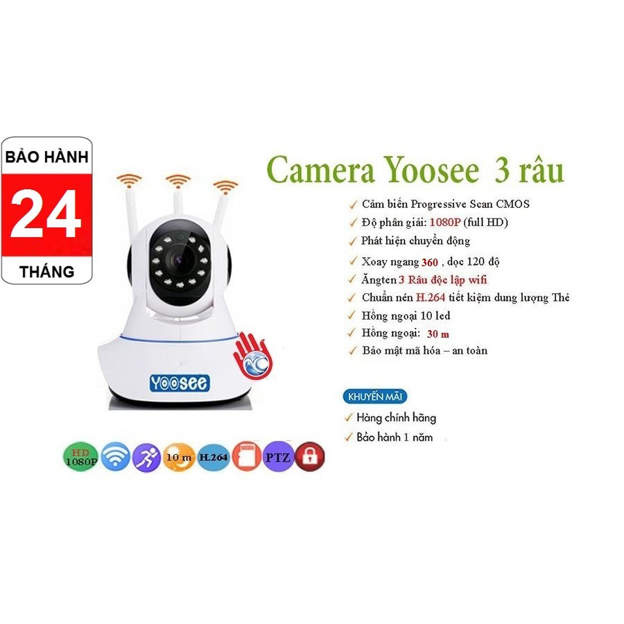 Giới thiệu [Tặng kèm thẻ 32gb] Camera WiFi YooSee 3 râu 2.0Mpx ,ghi âm, đàm thoại 2 chiều, cảnh báo, lưu trữ video