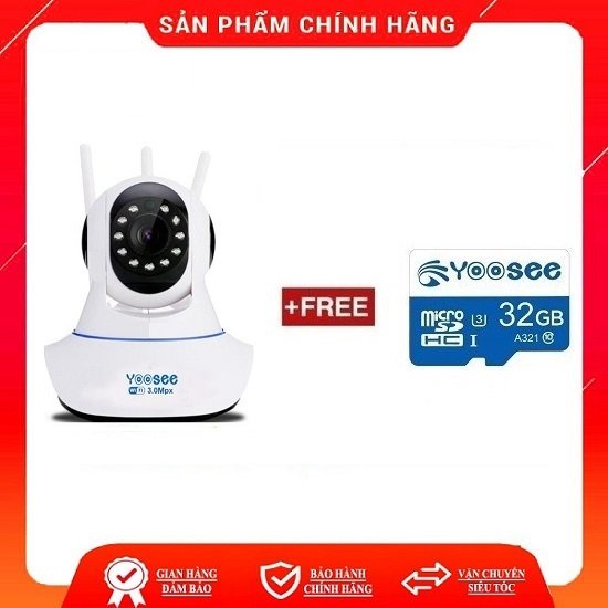 [Tặng kèm thẻ nhớ 32Gb] Camera IP Wifi Yoosee 3 Râu 3.0MP FullHD 11 đèn hồng ngoại đàm thoại 2 chiều, hình ảnh sắc nétCamera Yoosee 3 râu WiFi Robot thông minh siêu nét trợ thủ đắc lực giúp bạn hoàn toàn an tâm về an ninh cho ngôi nhà thân yêu . Bạn muốn quan sát mọi việc ở trong nhà , muốn biết hôm nay con yêu đang làm gì hoặc muốn biết thú cưng ở nhà thế nào và nhiều vấn đề hơn nữa mỗi khi đi vắng, ngoài ra bạn còn muốn liên hệ với người thân bên nước ngoài chẳng hạn.Để mọi việc trở nên dễ dàng và nhanh chóng hơn hôm nay chúng tôi xin giới thiệu với các bạn một sản phẩm có đầy đủ các tính năng trên đó là chiếc Camera yoosee WiFi - IP.không cần cài đặt, không cần cấu hình, khả năng đàm thoại 2 chiều, xoay 355 độ . kiểu dáng sang trọng kết nối wifi mạnh mẽ . ..