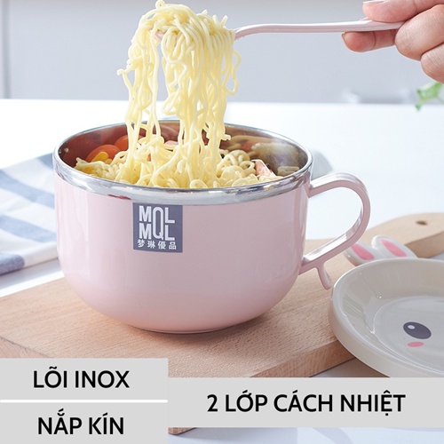 [Tặng kèm thìa] Bát ăn mì 🥗 Tô úp mì inox 2 lớp có nắp chống nóng cao cấp bát ăn cho bé nắp hình thú dễ thương