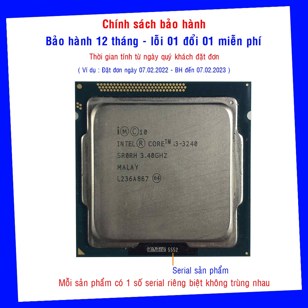 Giới thiệu [ tặng keo tản nhiệt ] chip i3 3240 socket 1155 bộ vi xử lý intel chính hãng bảo hành đổi mới trong 12 tháng