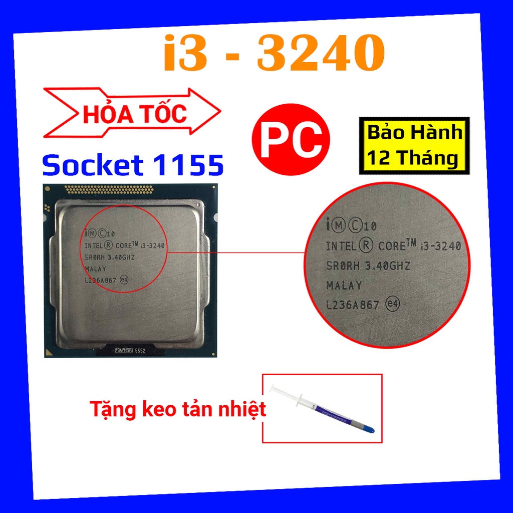 Máy tính & Laptop > Linh Kiện Máy Tính > CPU - Bộ Vi Xử Lý || [ tặng keo tản nhiệt ] chip i3 3240 socket 1155 bộ vi xử lý intel chính hãng bảo hành đổi mới trong 12 thángCòn hàng