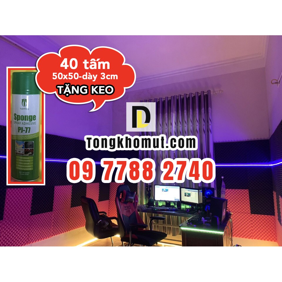 Giới thiệu [TẶNG KEO XỊT] - 40 tấm Mút tiêu âm, cách âm 50x50CM - dày 3cm /tấm - cho phòng thu