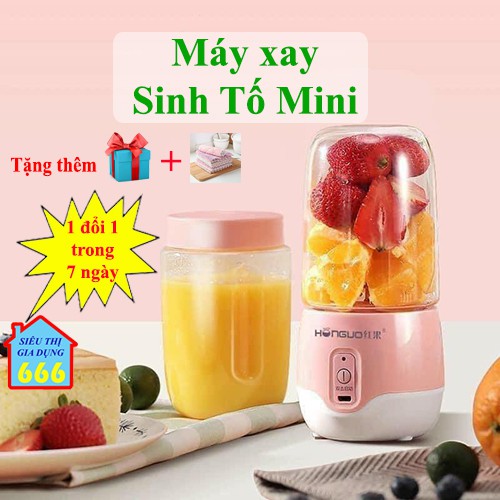 Giới thiệu [Tặng khăn lau] Máy xay sinh tố cầm tay SALE Máy xay đa năng mini sạc pin tích điện cao cấp cối nhựa nhỏ gọn tiện lợi