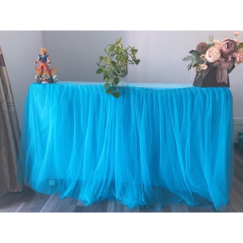 Khăn quây bàn trang trí sinh nhật 1 phần tạo điẻm nhấn cho bữa tiệc thêm bắt mắt và trang trọng hơnChất liệu vải voan