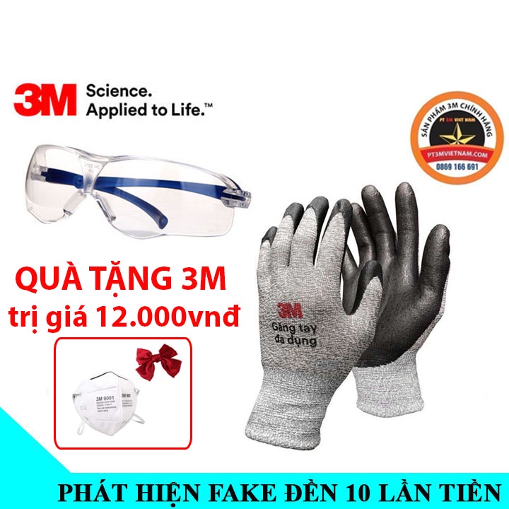 [Tặng Khẩu Trang 3M 9001 trị giá 12K] COMBO Kính bảo hộ chống tia UV, chống bụi 3M 10434 + Găng tay đa dụng 3M