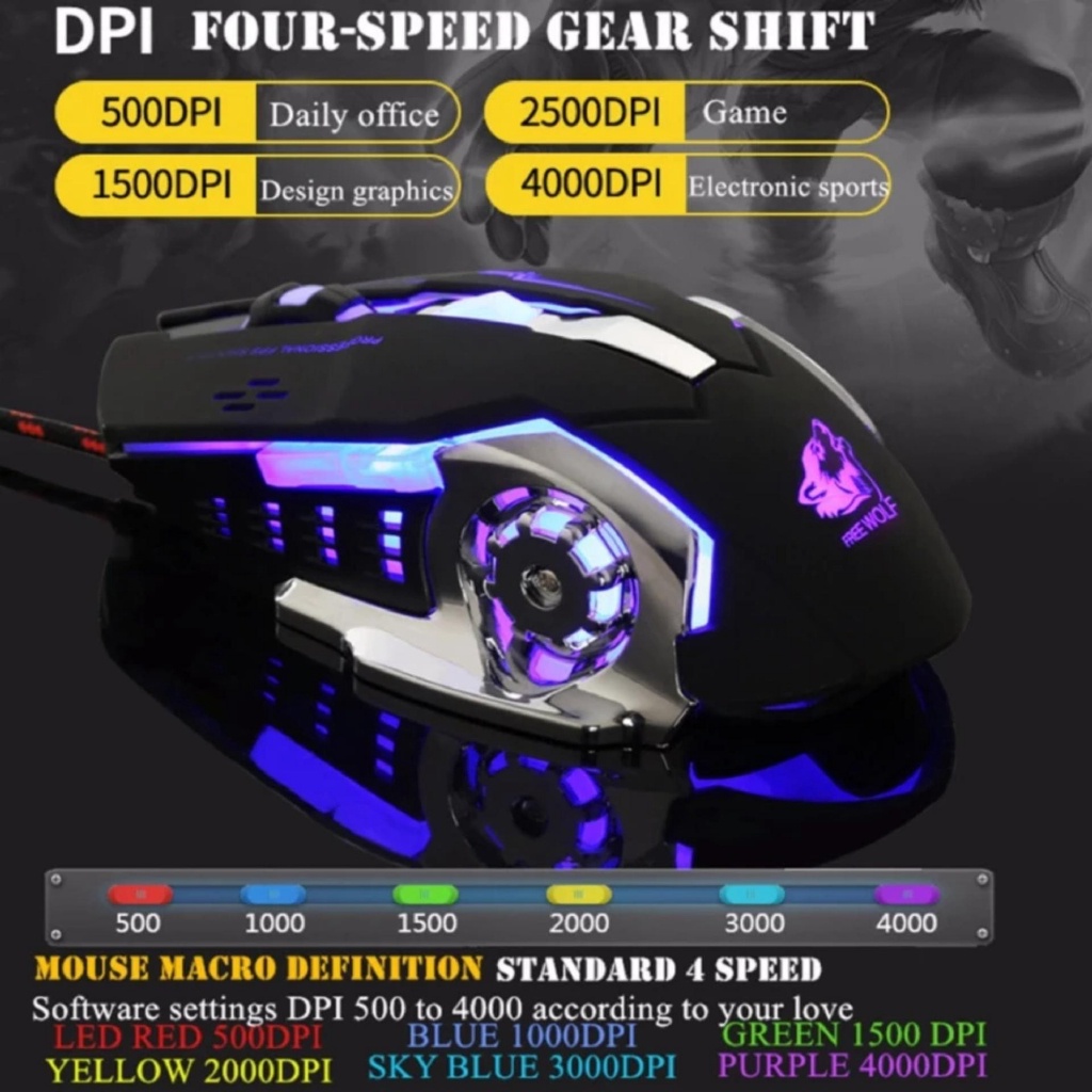 Sở hữu bề ngoài vô cùng ấn tượng; chuột chơi game Free wolf V5 xứng đáng là lựa chọn cho những game thủ mong muốn trải nghiệm cảm giác chuột chơi game với độ chính xác cao. Sử dụng cảm biến quang học với tốc độ có thể chuyển đổi qua lại.