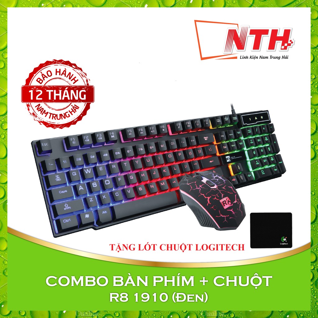 TẶNG LÓT CHUỘT COMBO PHÍM CHUỘT LED ĐA MÀU R8 1910