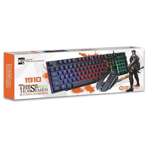 Bộ Bàn Phím Và Chuột Chuyên Game R8 1910 Led- Đèn led nền và led phím với 3 màu có thể thay đổi và tắt mở.