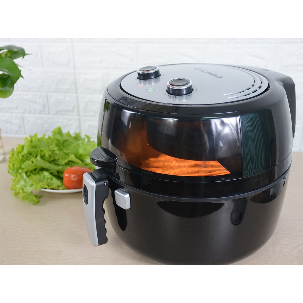 - Mặt kính cường lực trong suất chịu nhiệt cao, người dùng có thể dễ dàng quan sát quá trình thực phẩm được chiên từ đó điều chỉnh nhiệt độ và thời gian phù hợp.