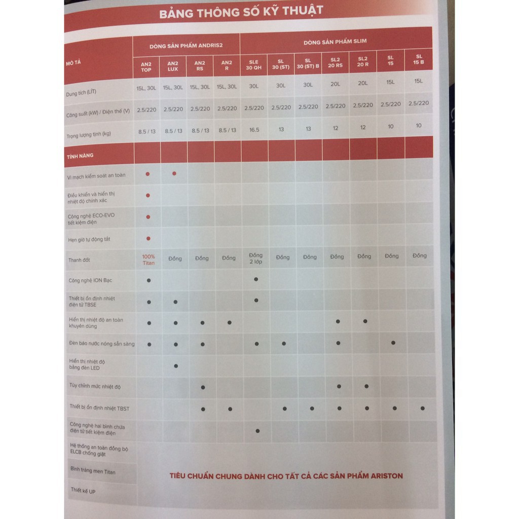 + THÔNG SỐ KỸ THUẬT:Bình nóng lạnh Ariston 30L ANDRIS2 30RS
