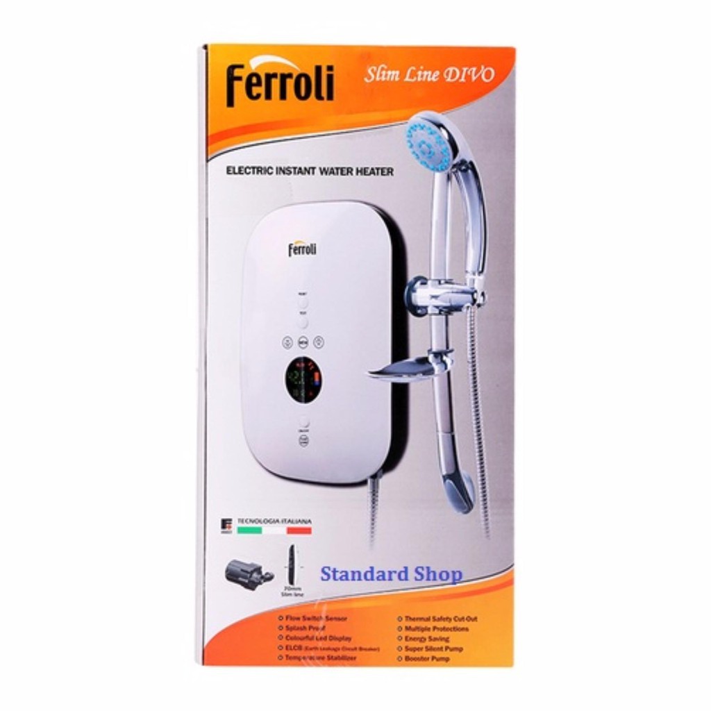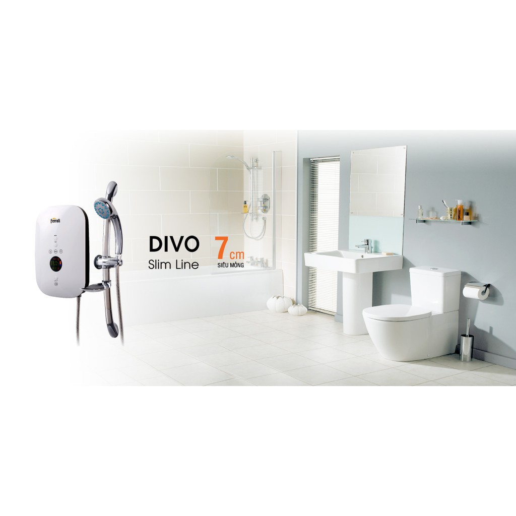 - Với thiết kế tiên tiến và linh kiện đặc biệt được bố trí phía sau lớp vỏ sản phẩm. Máy nước nóng Ferroli Divo SDP 4.5S có độ dày siêu mỏng 7cm, đảm bảo cung cấp lượng nước nóng tức thời, liên tục.