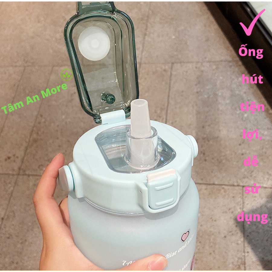 (Tặng mặt nạ) Bình nước thể thao 2L dễ thương có vạch báo giờ uống nước _ Bảo hành 1 tháng