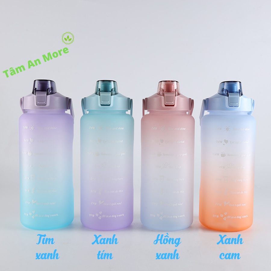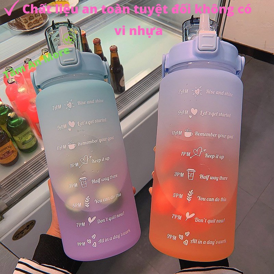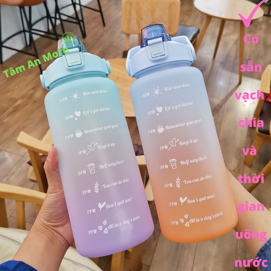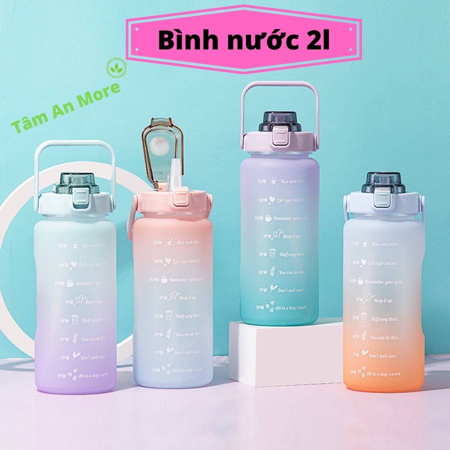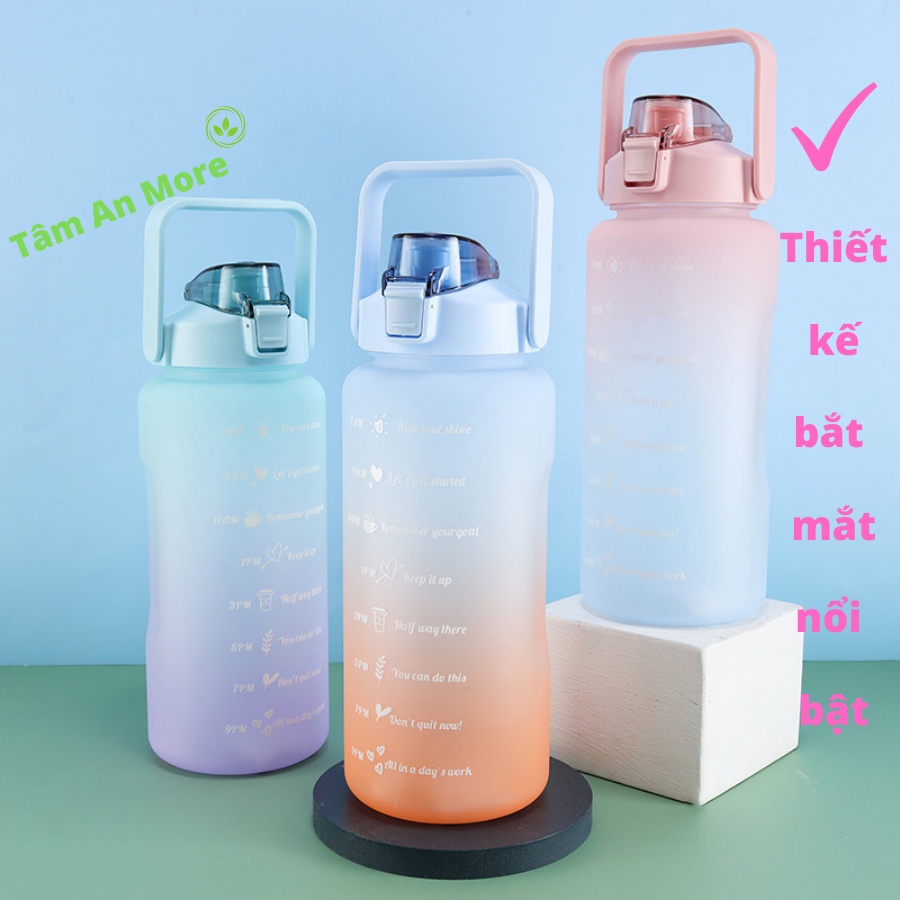 - Thêm vào đó Bình đựng nước 2L thể thao, dễ thương, có vạch báo giờ uống nước góp phần bảo vệ môi trường, giảm thiểu rác thải nhựa đáng kể.
