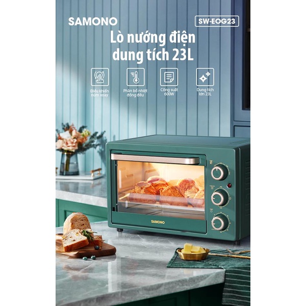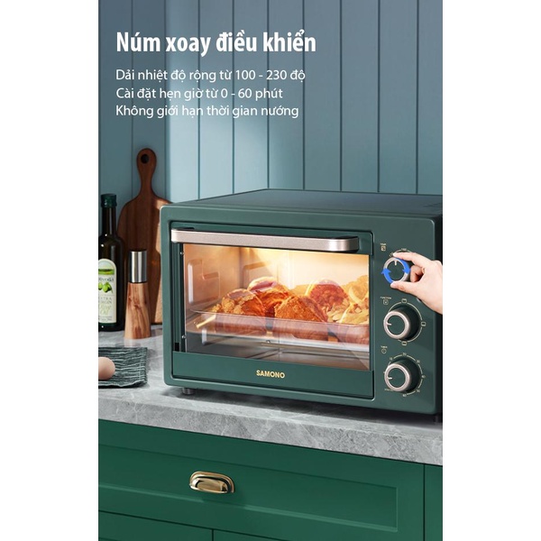 Giới thiệu [Tặng máy xay] Lò nướng chính hãng SAMONO SW-EOG23 dung tích lớn 23L xanh green đẳng cấp