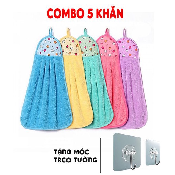 [Tặng Móc Treo] Combo 5 Khăn lau tay treo bếp nhiều màu đẹp 25X45 - Khăn lau tay nhà bếp đa năng có móc treo