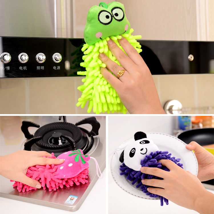 Giới thiệu [ TẶNG MÓC TREO ] khăn lau tay hình thú hoạt hình - khăn vải lau bếp đa năng có móc treo tường