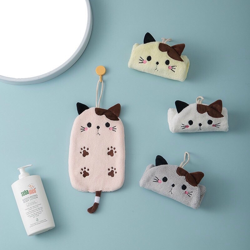 Nhà cửa & Đời sống > Dụng cụ chăm sóc nhà cửa > Khăn vệ sinh || [ Tặng móc treo ] Khăn Lau Tay Siêu Thấm Hút Nhanh Khô Thêu Hình Mèo Dễ Thương Nhiều Màu SắcCòn hàng