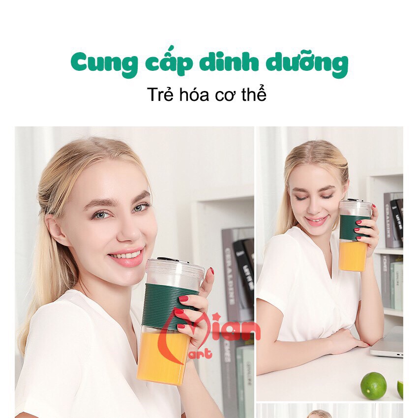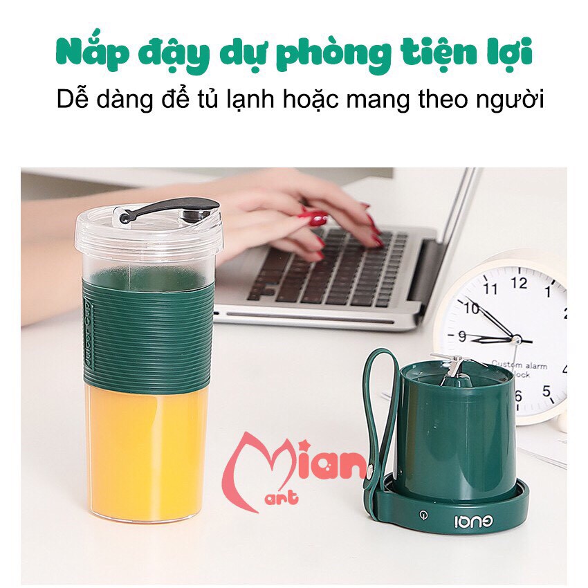 [TẶNG NẮP CẮM ỐNG HÚT] MÁY XAY SINH TỐ CẦM TAY MIAN 3 LƯỠI SẠC PIN TIỆN DỤNG 320ML BẢO HÀNH 3 THÁNG 1 ĐỔI 1