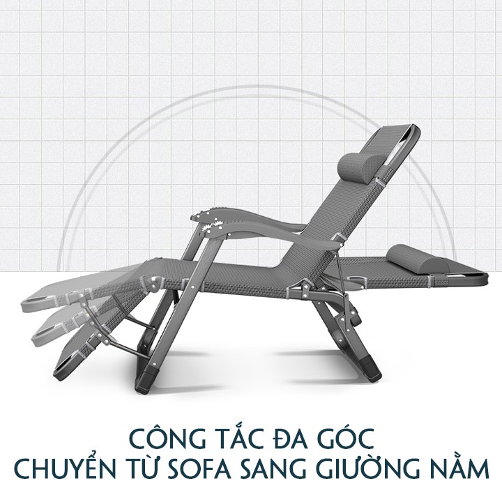 Tặng Nệm - Ghế xếp massage tay ngả thành giường nằm ngủ trưa thư giãn đọc sách gấp gọn tặng nệm 4D